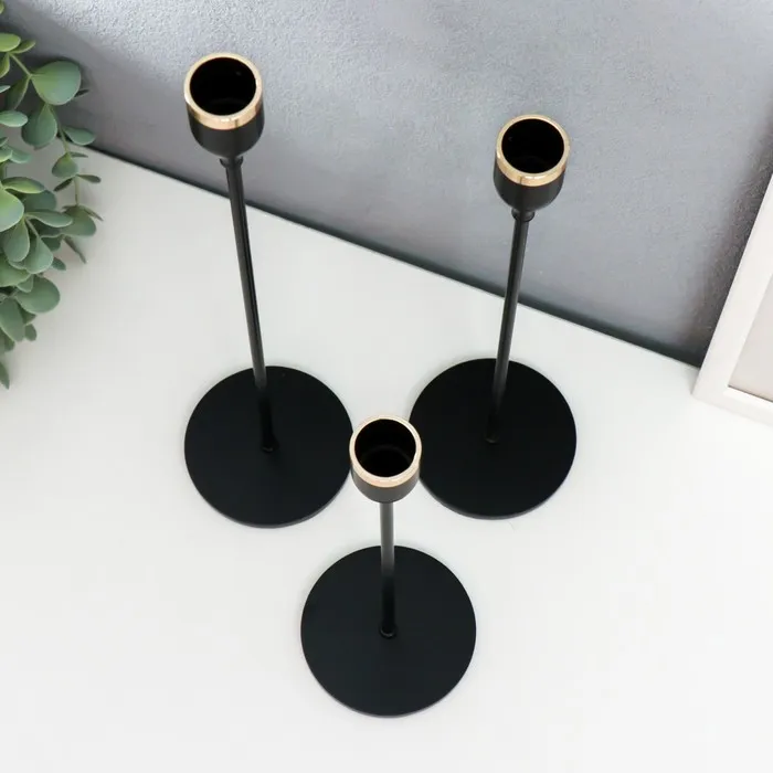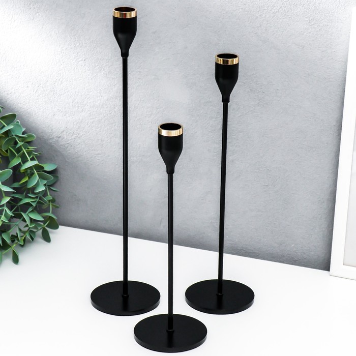 Набор подсвечников на 1 свечу «Классика», 3 шт., чёрный, 24×8×8 см, 29×8×8 см, 34×8×8 см