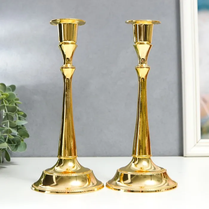 Набор подсвечников на 1 свечу «Плавность», 2 шт., металл, золото, 24×10×10 см — Характеристики