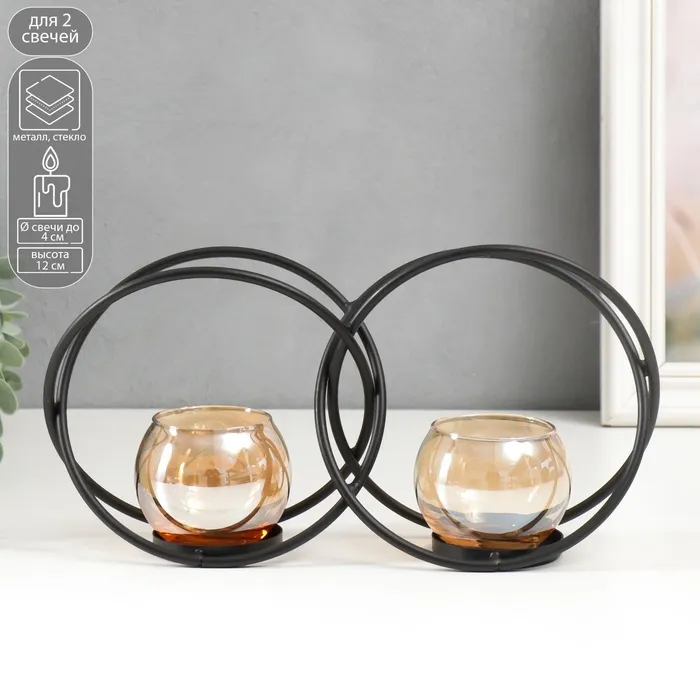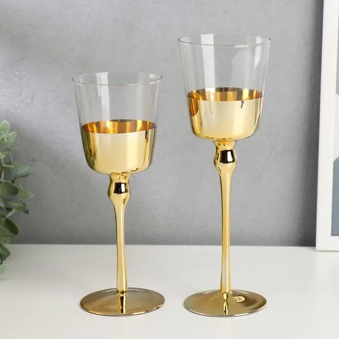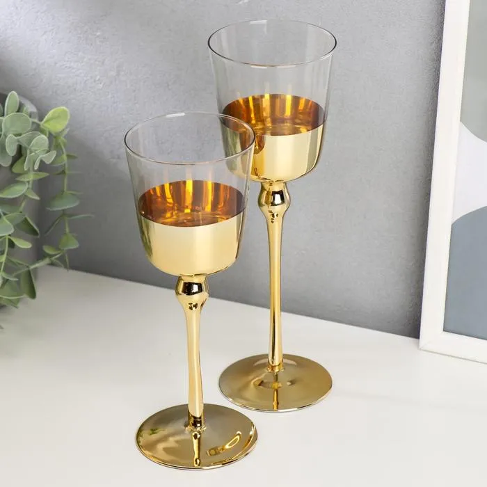 Набор подсвечников на 1 свечу «Романтика свечей», 2 шт., стекло, золотистый, h=23 см, 20 см — Характеристики