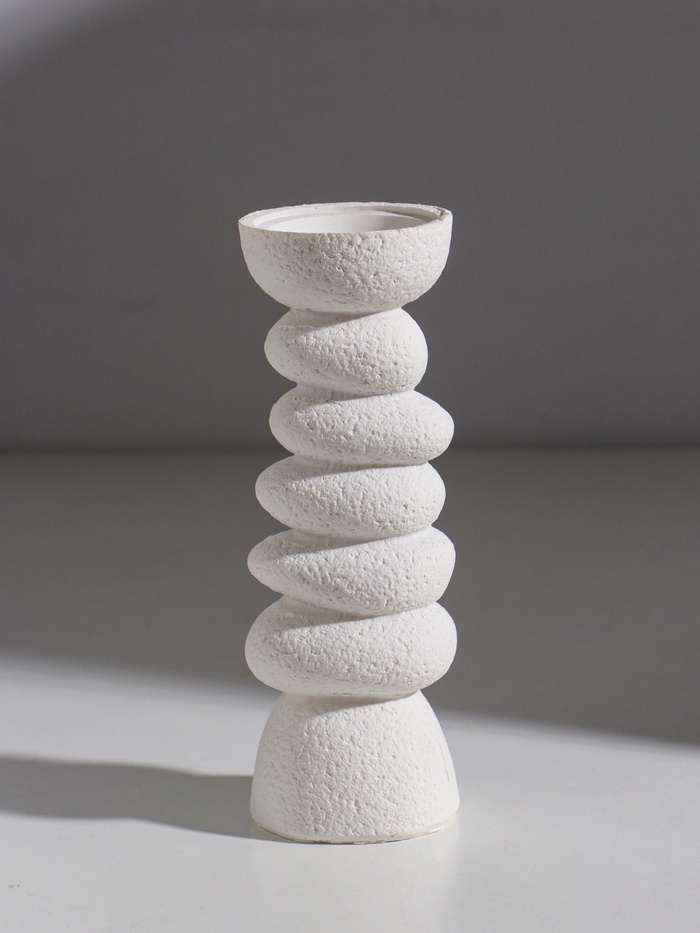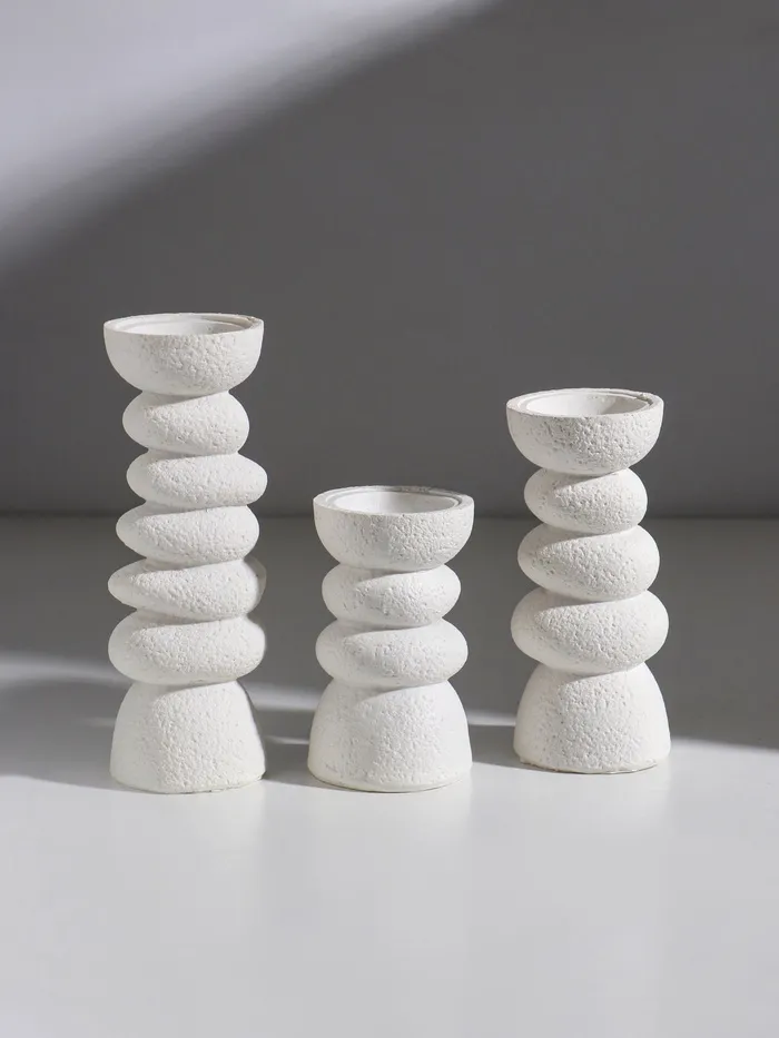 Представляем набор, который привнесёт в ваш интерьер нотку гармонии и умиротворения, словно вы перенеслись в настоящий сад камней. Три элегантных подсвечника, выполненных из высококачественного полистоуна, станут идеальным акцентом для создания атмосферы спокойствия и уюта. Белоснежный цвет и минималистичный дизайн делают их универсальным решением для любого пространства — от гостиной до террасы.