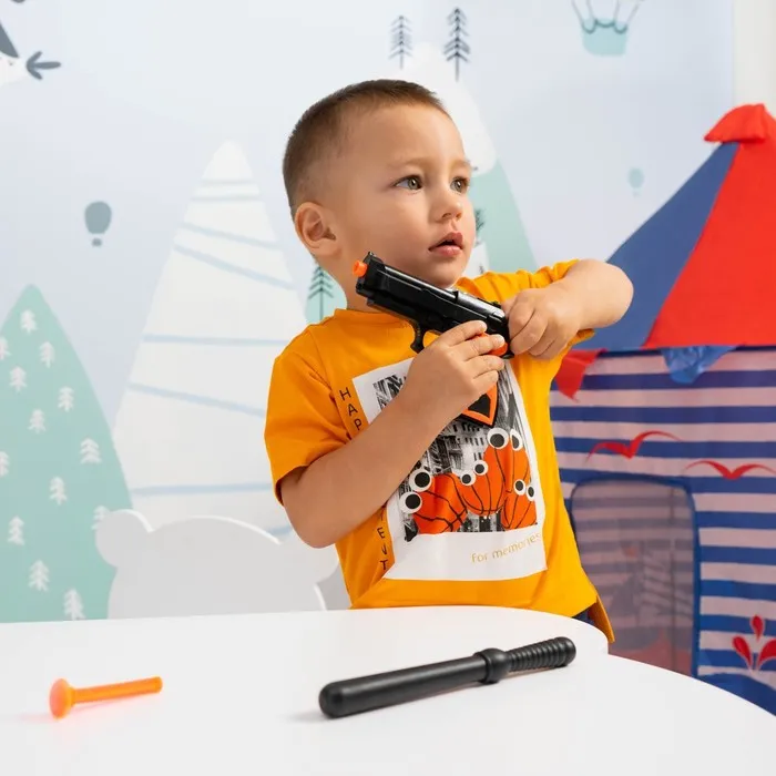 Этот комплект из 7 предметов станет отличным дополнением к играм детей, позволяя почувствовать себя настоящим защитником правопорядка и развивая воображение.