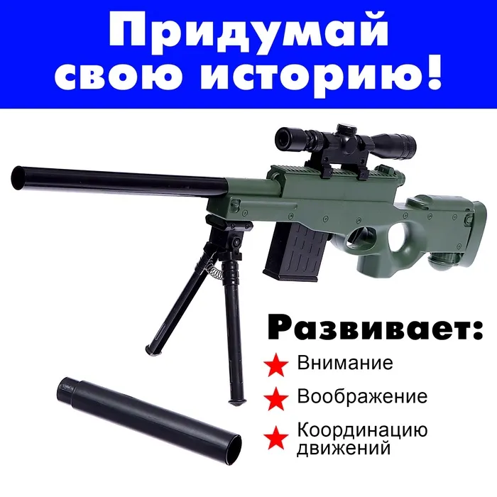 - Свет и звук: винтовка оснащена световыми и звуковыми эффектами, что делает игру ещё более реалистичной.