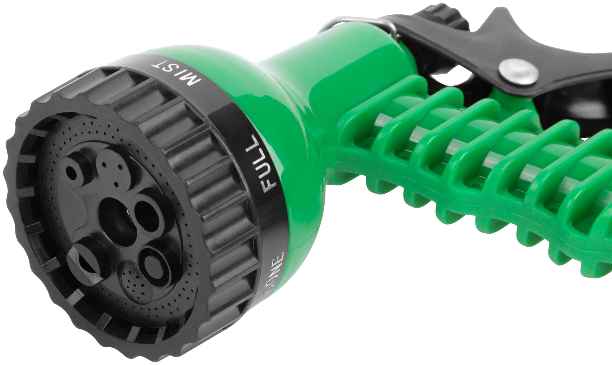 Этот набор станет незаменимым помощником для садоводов и ландшафтных дизайнеров, обеспечивая удобство и эффективность полива. Растягивающийся шланг длиной от 5 до 15 метров позволяет обрабатывать большие участки, а пистолет с 7 режимами распыления подходит для различных задач: от деликатного орошения до интенсивного полива.