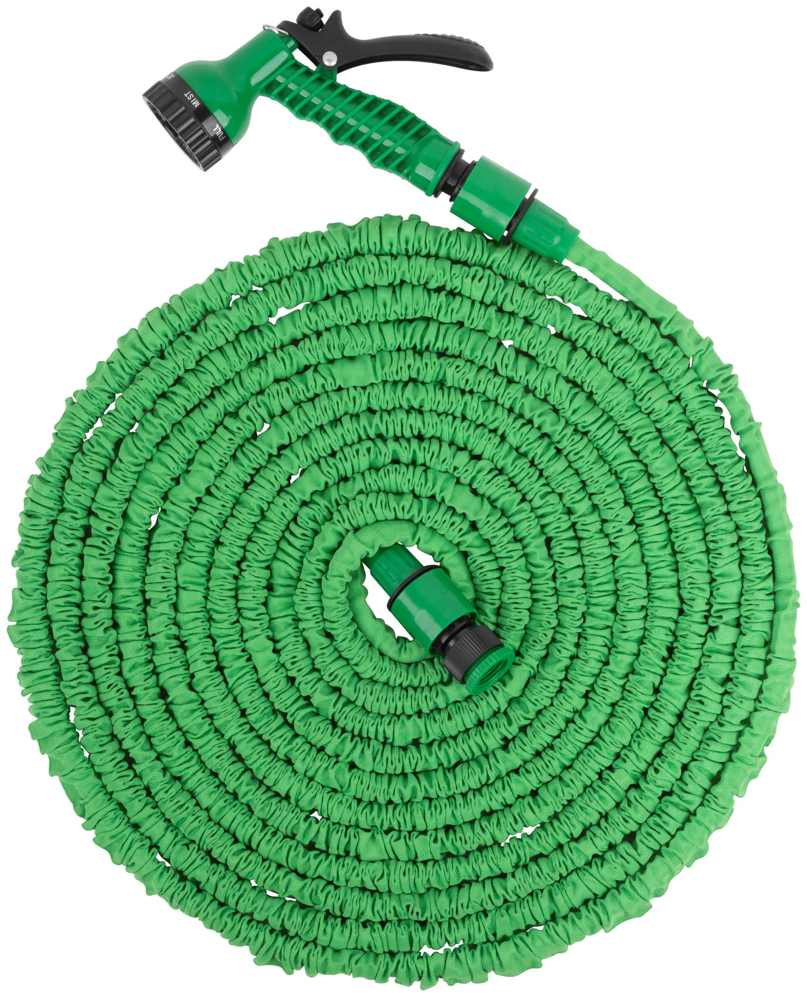 Набор поливочный FIT идеально подходит для ухода за садом и огородом. Благодаря растягивающемуся шлангу, который увеличивается в три раза, вы можете легко поливать даже дальние участки, а после использования шланг автоматически сжимается обратно, что упрощает хранение.
