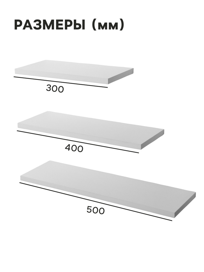 - Три размера полок (300, 400, 500 мм): создают гибкую систему размещения, которую можно адаптировать под свои задачи.