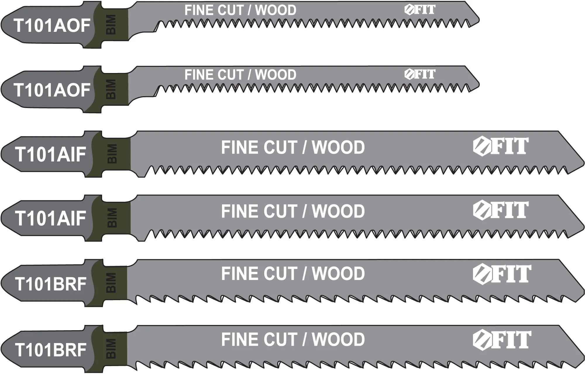 Полотна включают модели T101BRF, T101AOF и T101AIF, каждая из которых представлена двумя экземплярами. Это позволяет выбрать оптимальное полотно в зависимости от типа работы и материала.