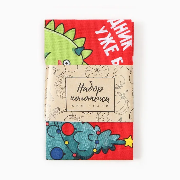 Набор полотенец Доляна "Наконец-то Новый год" 28х46 см - 2 шт, 100% хл, рогожка 164 г/м2