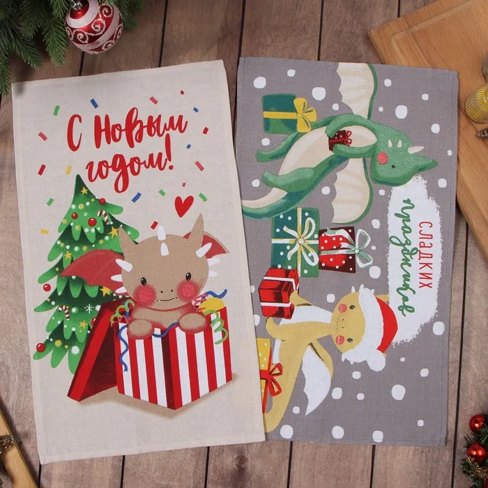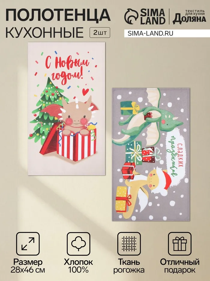Набор полотенец «Доляна. Новогодние подарки», 28×46 см - 2 шт., 100% хлопок, рогожка 164 г/м² — Характеристики
