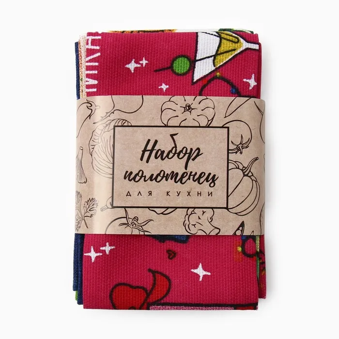 Набор полотенец Доляна "Праздничное веселье" 28х46 см - 6 шт, 100% хл, рогожка 164 г/м2 — Характеристики