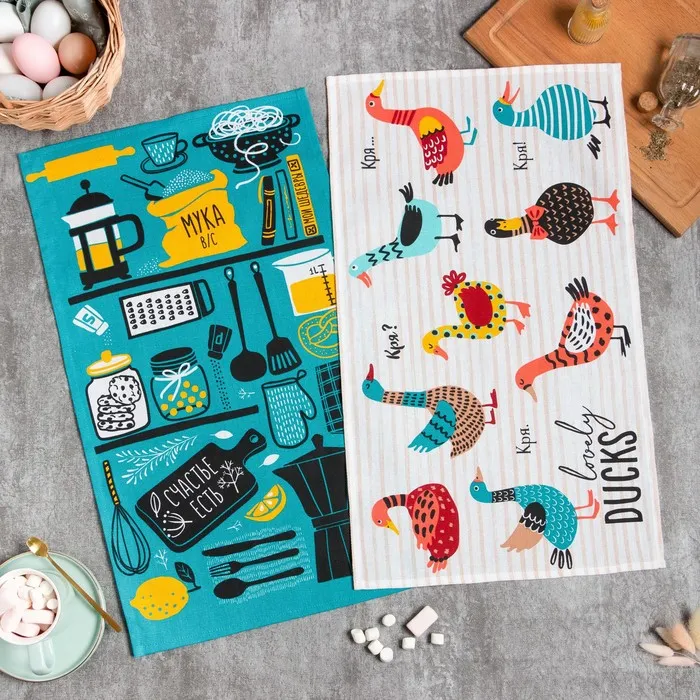 Набор полотенец Доляна «Счастье есть» 35×60 см - 2 шт., 100% хлопок — Характеристики
