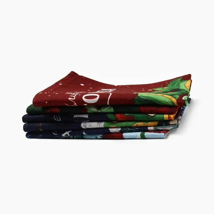 Набор полотенец Доляна "Счастливого нового года" 28х46 см - 6 шт, 100% хл, рогожка 164 г/м2 — Характеристики