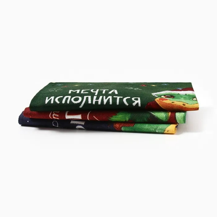 Набор полотенец Доляна "Встречайте новый год" 28х46 см - 3 шт, 100% хл, рогожка 164 г/м2 — Характеристики