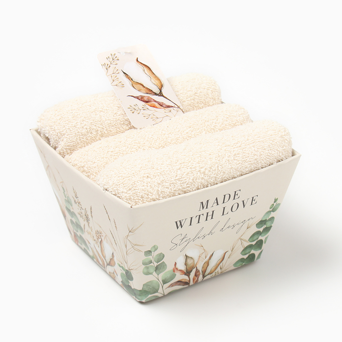 Набор полотенец «Этель» Made With love, 35×50 см - 3 шт., 100% хлопок, махра 340 г/м² — Характеристики