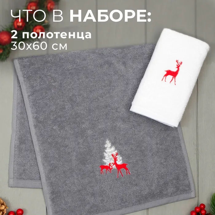 Набор полотенец Этель "Олени" 30х60 см-2шт, 100% хлопок 340 г/м2 — Характеристики