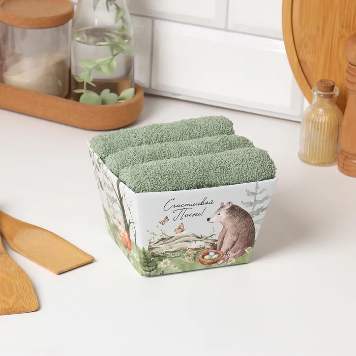 Набор полотенец Этель «Счастливой пасхи» 35×50 см - 3 шт., 100% хлопок, махра 340 г/м² — Характеристики
