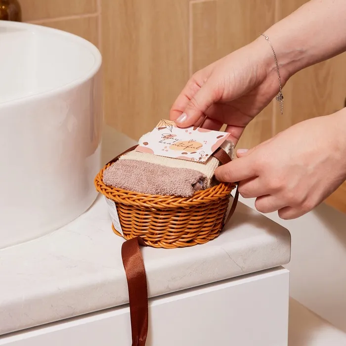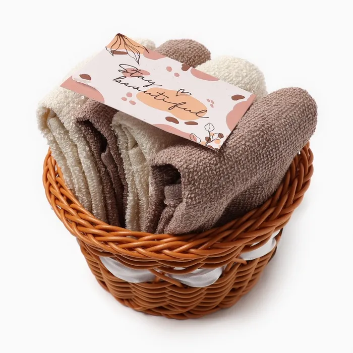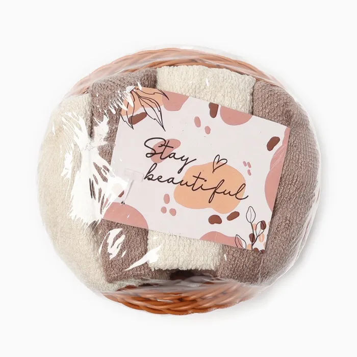 Набор полотенец в корзинке Этель "Stay Beautiful" 30х30шт - 4 шт, цв. коричневый, 100%хл — Характеристики