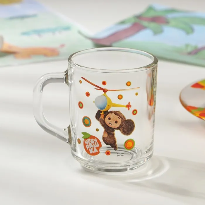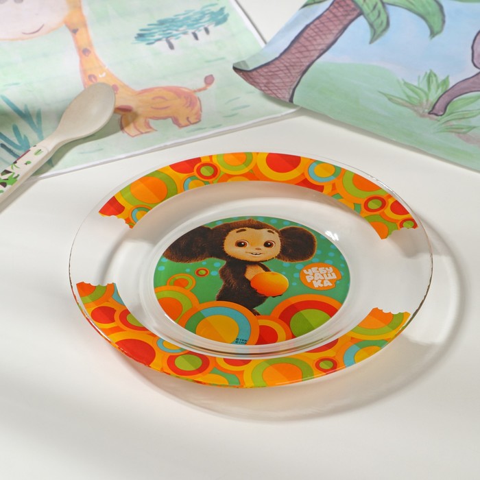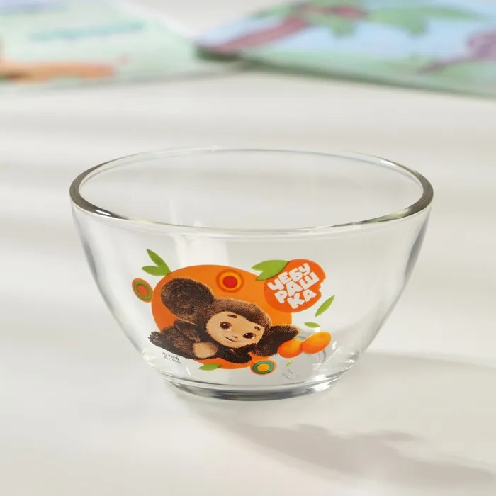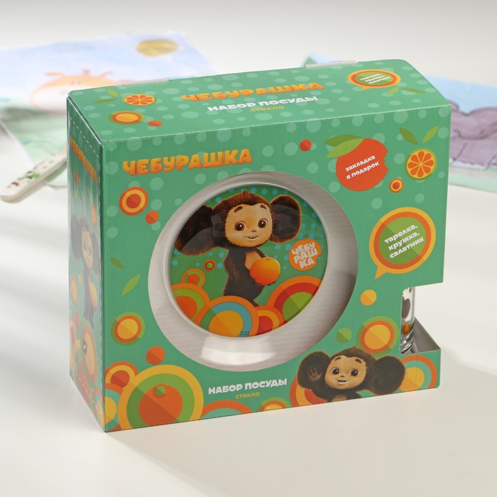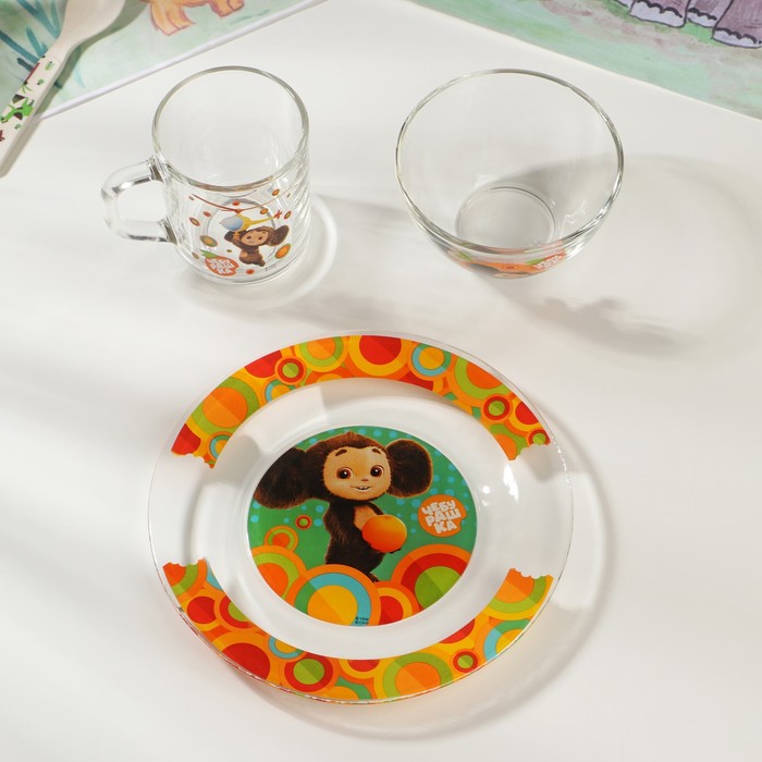 Набор посуды из прочного стекла с любимым героем «Чебурашка» - это идеальный выбор для вашего ребёнка.