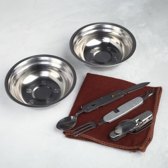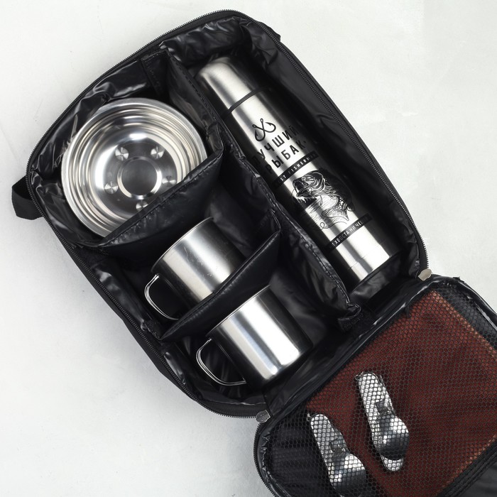 Набор посуды для пикника «Лучший рыбак»: термос 0.5 л, тарелка 300 мл, 2 шт., кружка 200 мл, 2 шт., мультитул 2 шт. — Характеристики