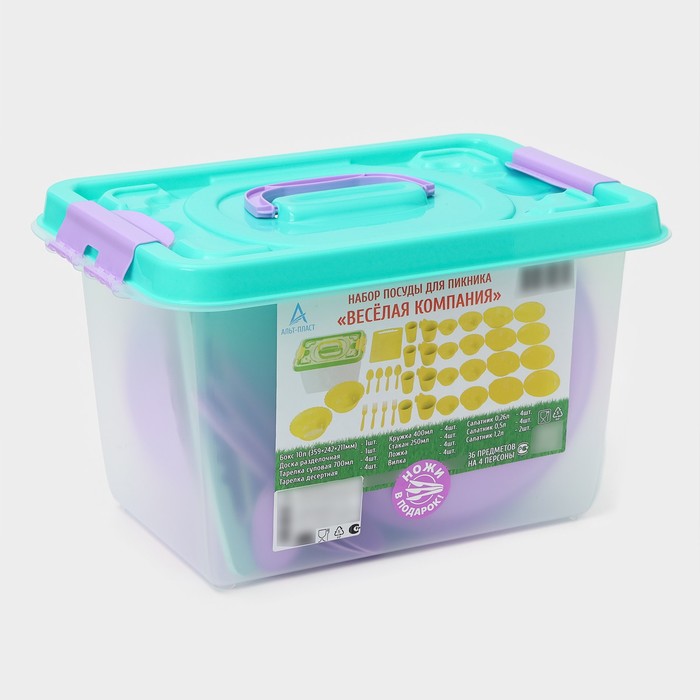 Набор посуды для пикника на 4 персоны Альт-Пласт «Весёлая компания», 36 предметов, пластик, МИКС — Характеристики