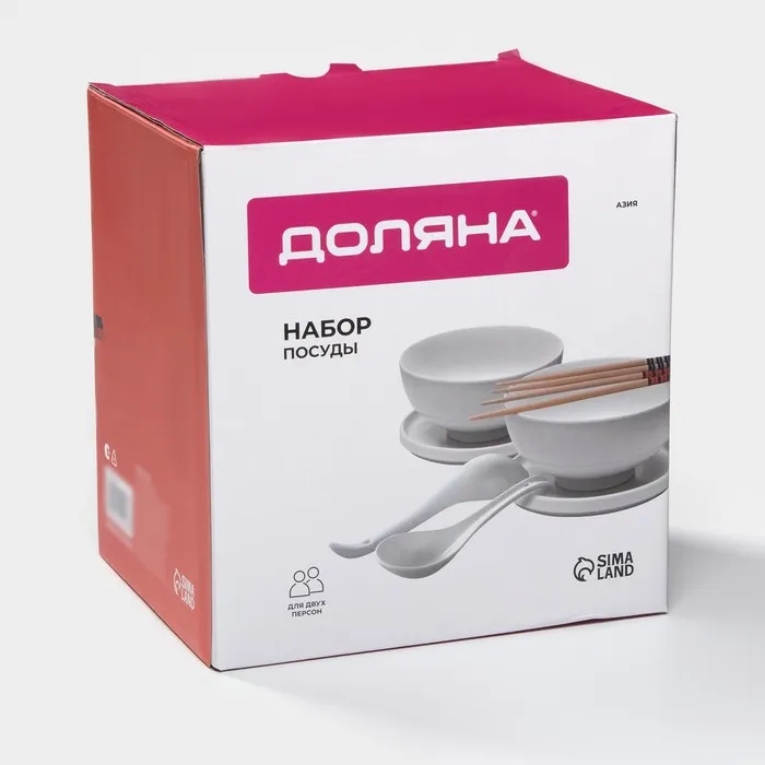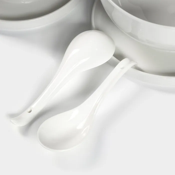 Набор посуды для рамена Доляна, 8 предметов: миска 1.6 л, тарелка d=20 см, 2 ложки, 2 пары палочек, фарфор, белый — Характеристики