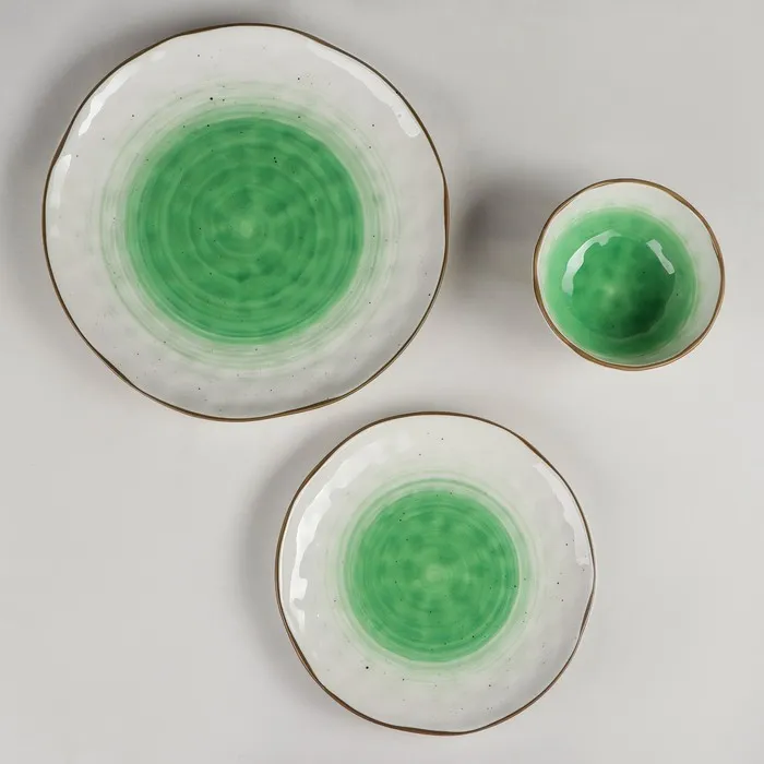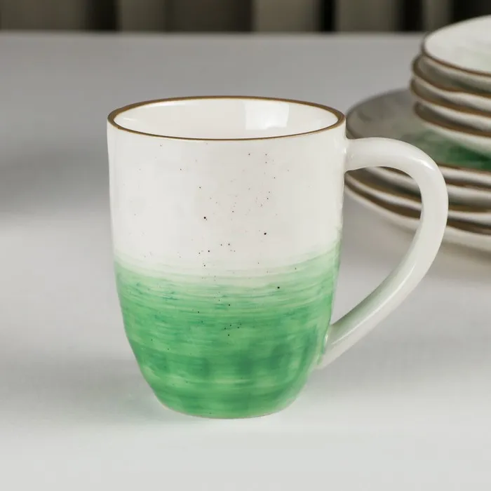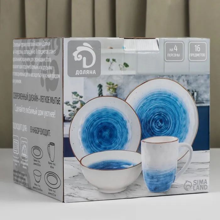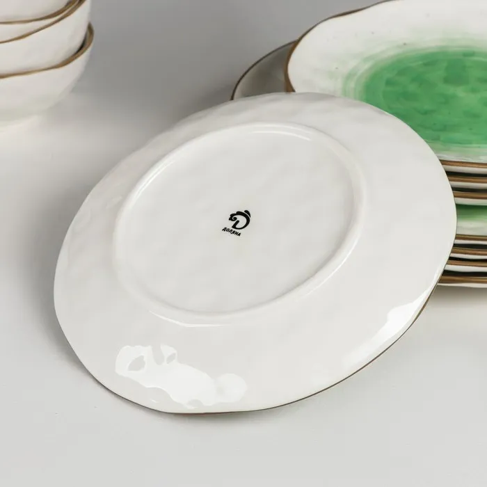 Набор посуды Доляна «Космос», 16 предметов: 4 тарелки d=21 см, 4 тарелки d=27,5 см, 4 миски d=13 см, 4 кружки 400 мл, фарфор, белый, зелёный — Характеристики