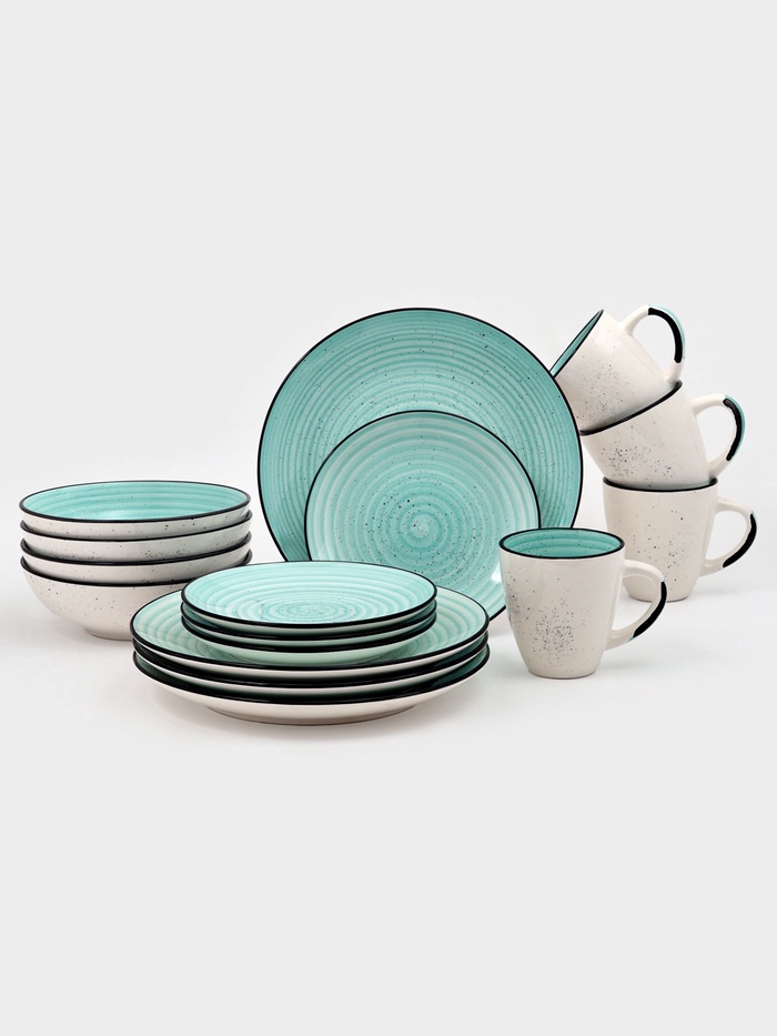 Почувствуйте свежесть океана у себя дома с этим нежным 16-предметным набором керамической посуды в небесно-голубых тонах. Прекрасный выбор для обновления вашей кухни и создания атмосферы легкости за обеденным столом. Идеально подойдет для семейных обедов и встреч с друзьями.
