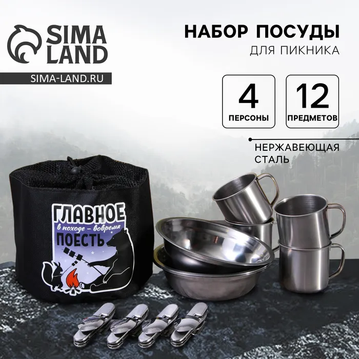 Набор посуды «Главное в походе», кружка 4 шт., тарелка 4 шт., мультитул 4 шт. — Характеристики