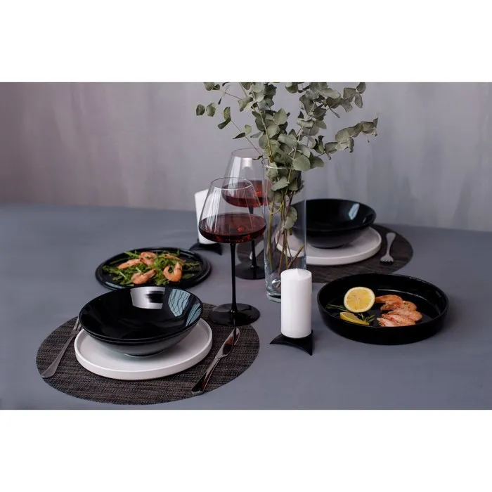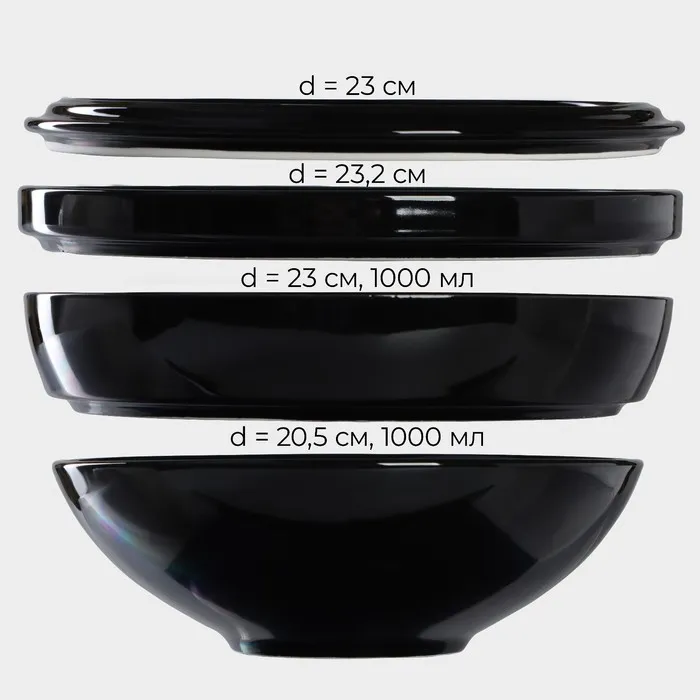 Набор посуды Magistro La palla, 7 предметов: тарелка d=23 см, 2 тарелки d=23.2 см, 2 тарелки 1000 мл, 2 салатника 1000 мл, фарфор, чёрный — Характеристики