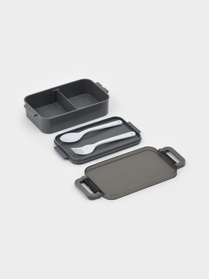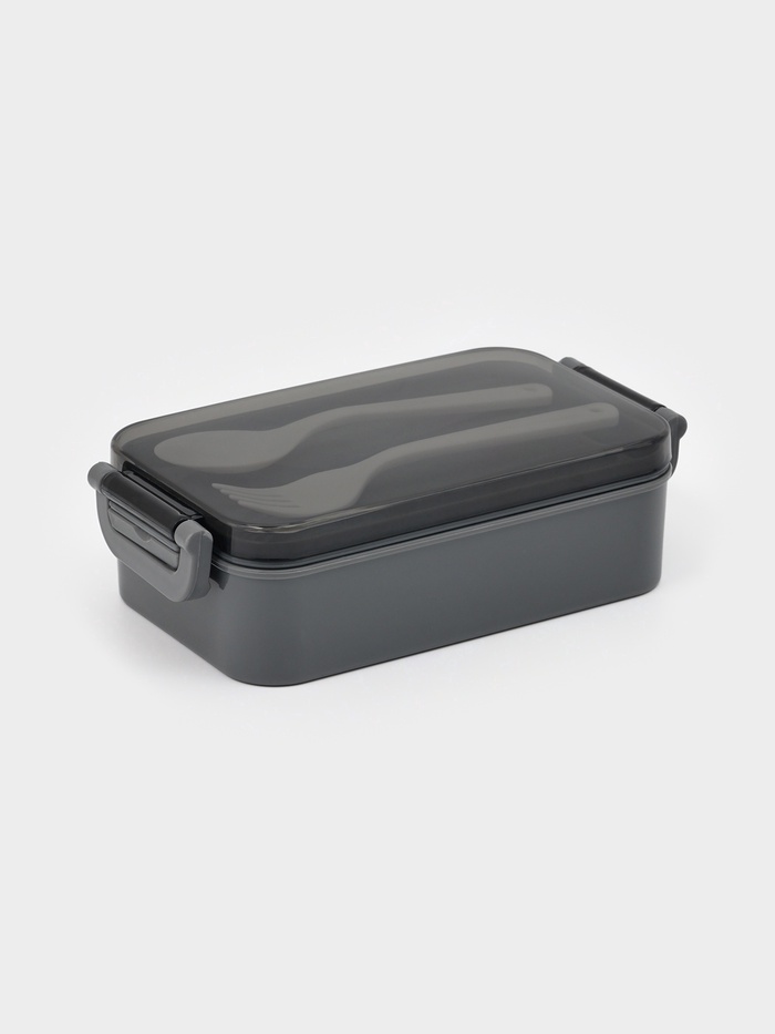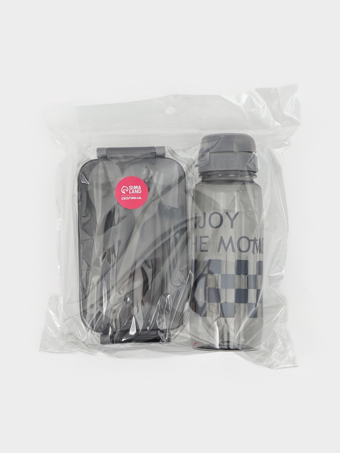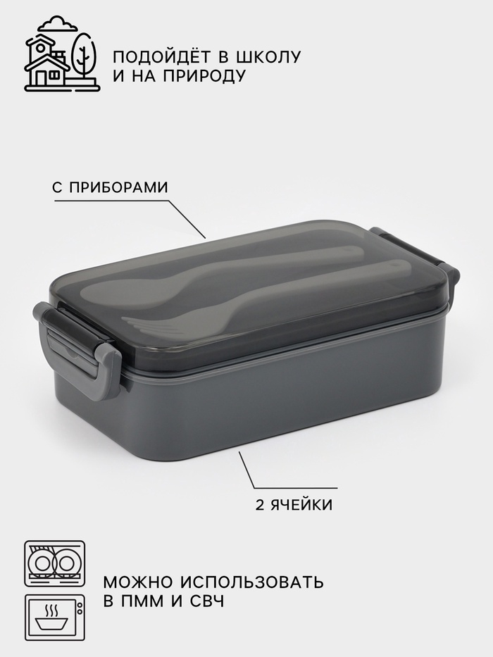 Набор посуды с собой Доляна, 4 предмета: бутылка 500 мл, ланч - бокс 450 мл, вилка, ложка, пластик, серый — Характеристики