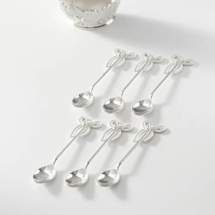 Набор посуды сувенирной: 6 сувенирных ложек с бантиком и подставка «Белый лебедь с цветами», 5×11×15 см — Характеристики