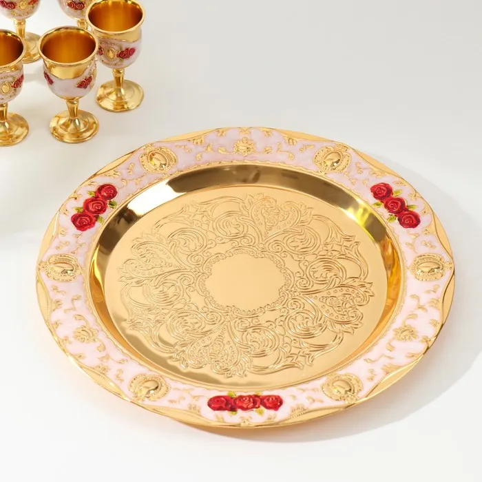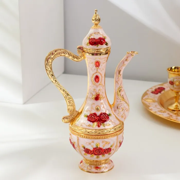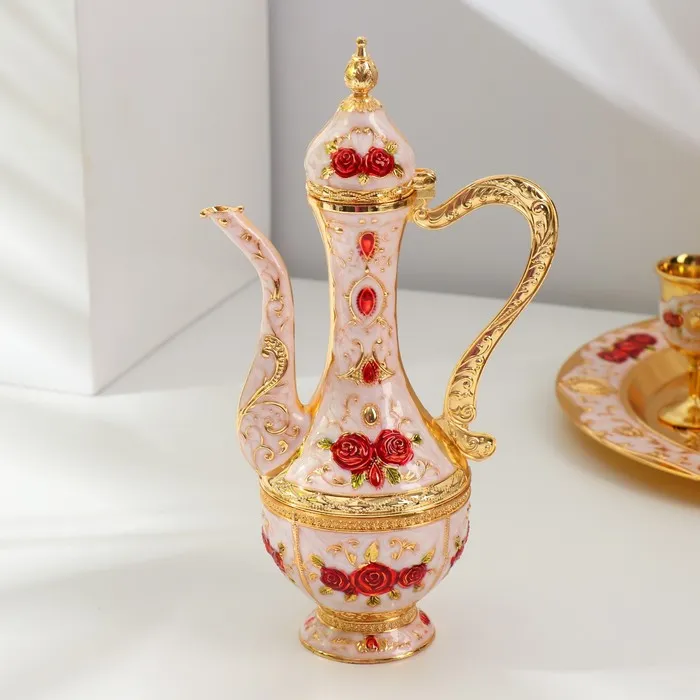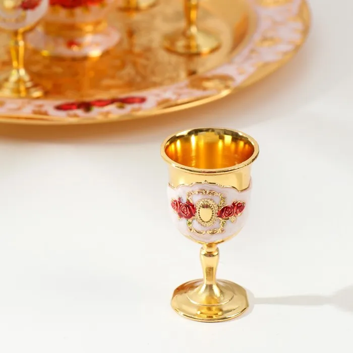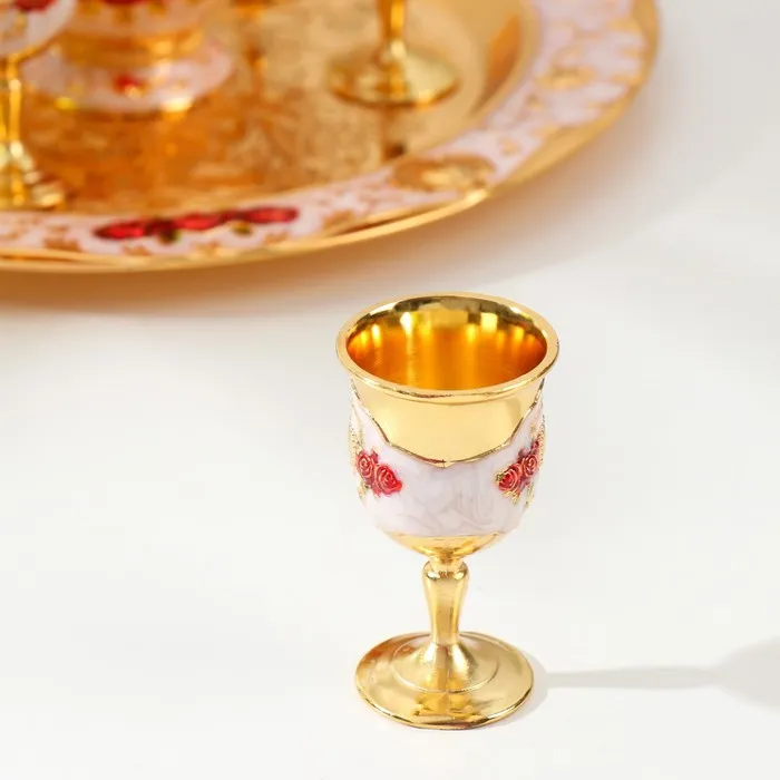 Набор посуды сувенирной: винный кувшин, 6 бокалов, поднос «Стамбул. Красные розы, узоры», белый с золотом — Характеристики