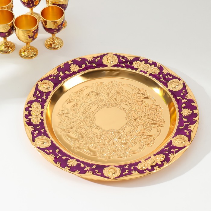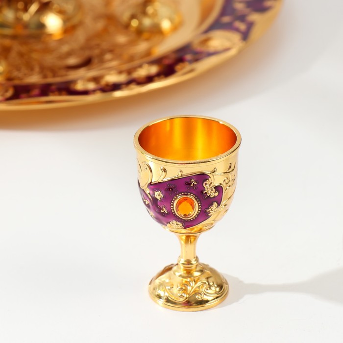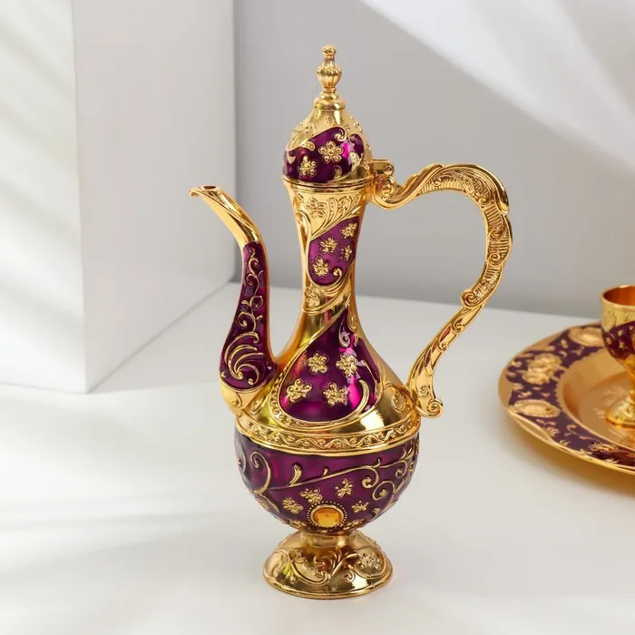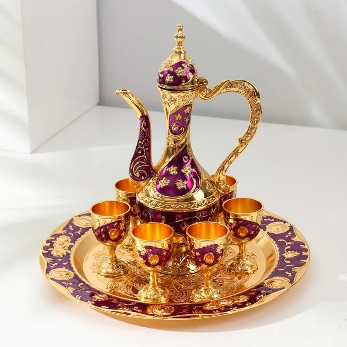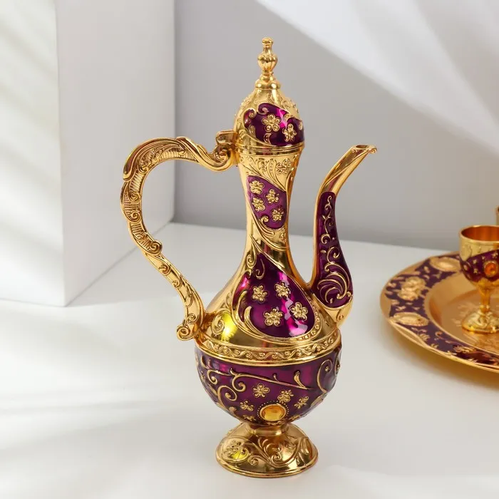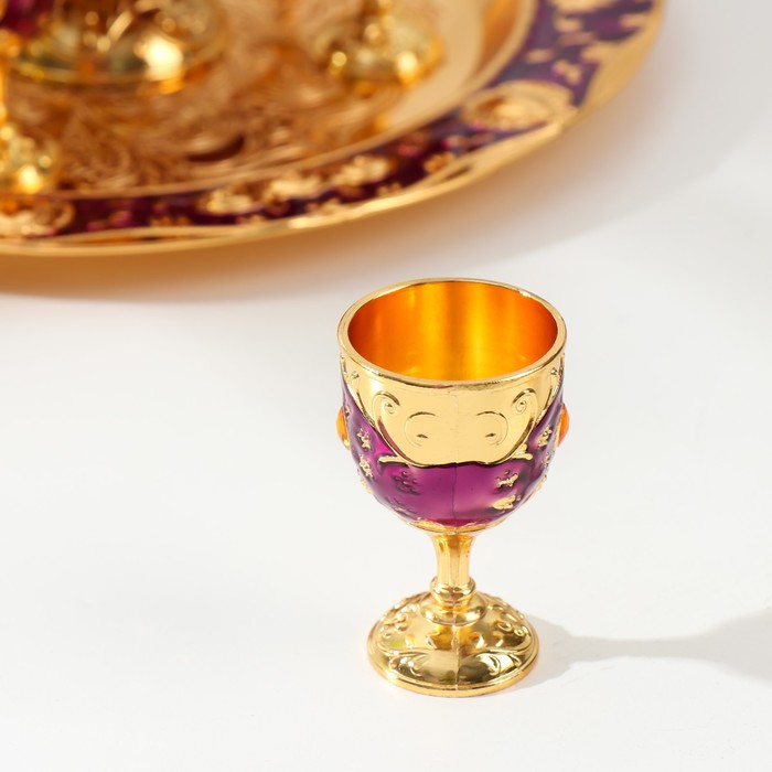 Набор посуды сувенирной: винный кувшин, 6 бокалов, поднос «Стамбул. Цветы», фиолетовый с золотом — Характеристики