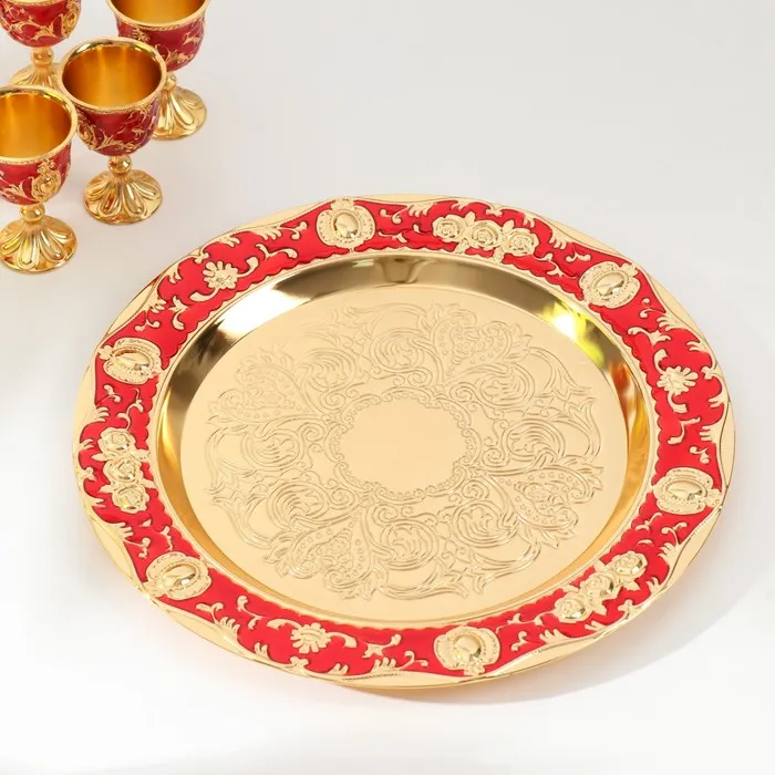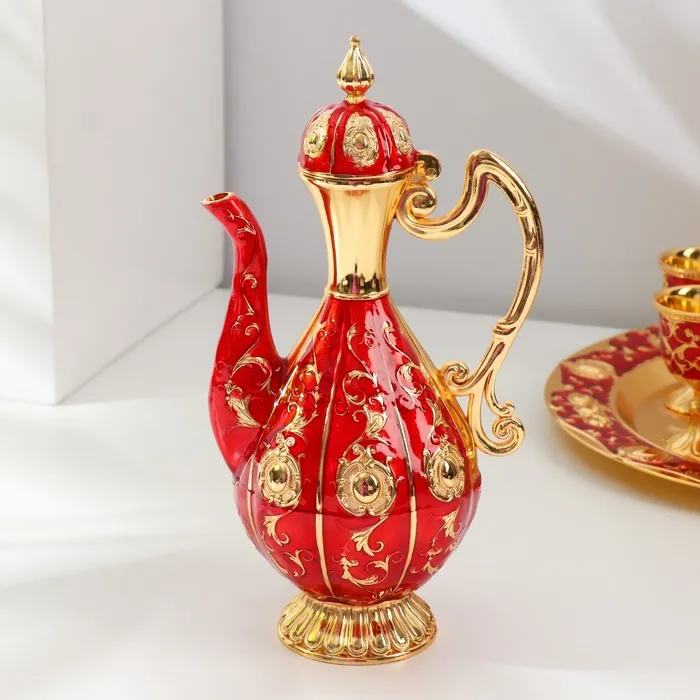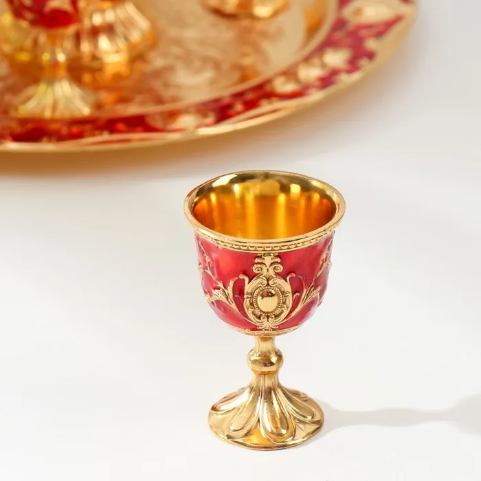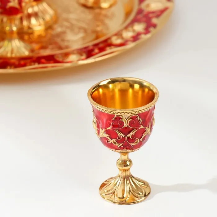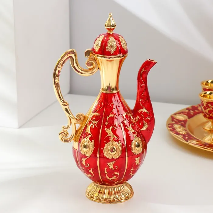 Набор посуды сувенирной: винный кувшин, 6 бокалов, поднос «Турция. Медальон и узоры», красный с золотом — Характеристики