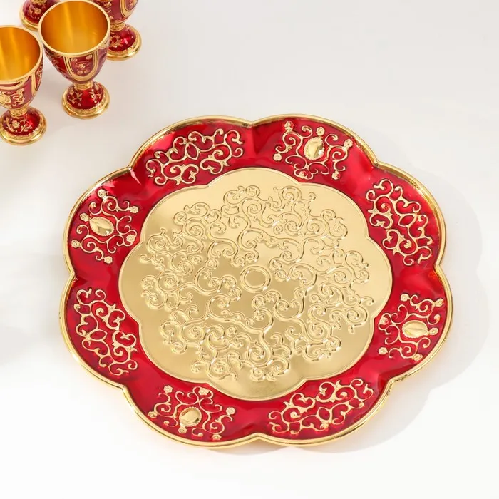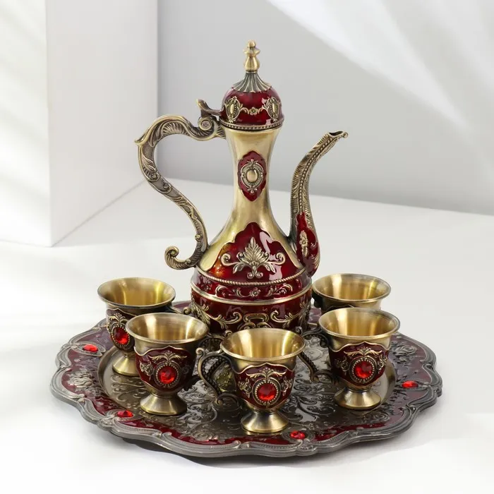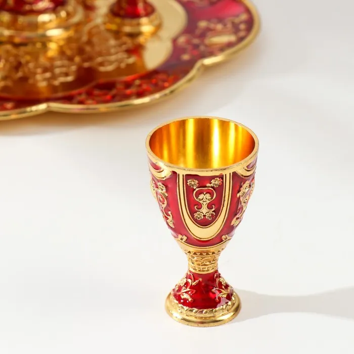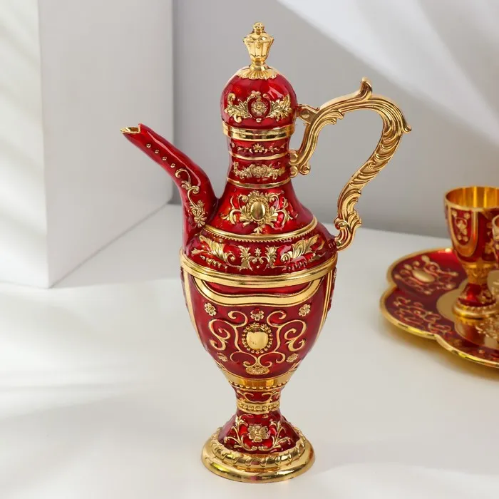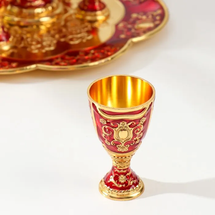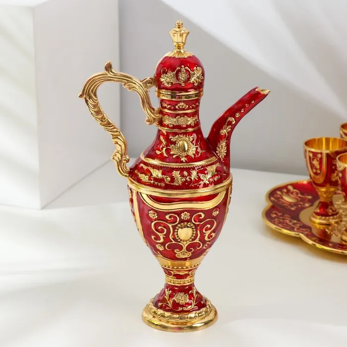 Набор посуды сувенирной: винный кувшин, 6 бокалов, поднос «Турция. Цветы и узоры», красный с золотом — Характеристики