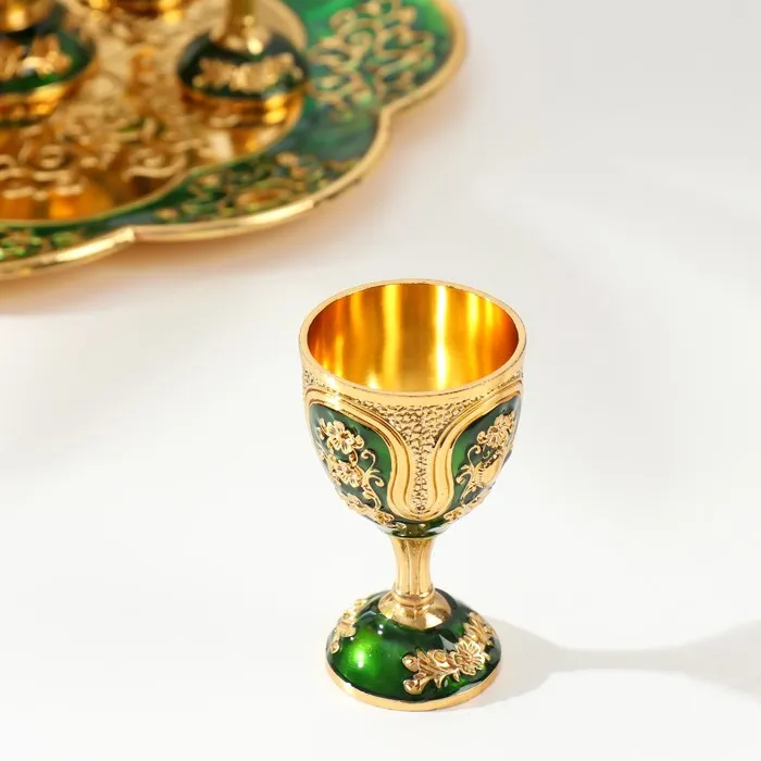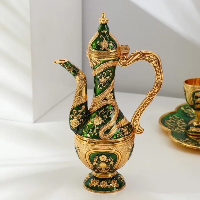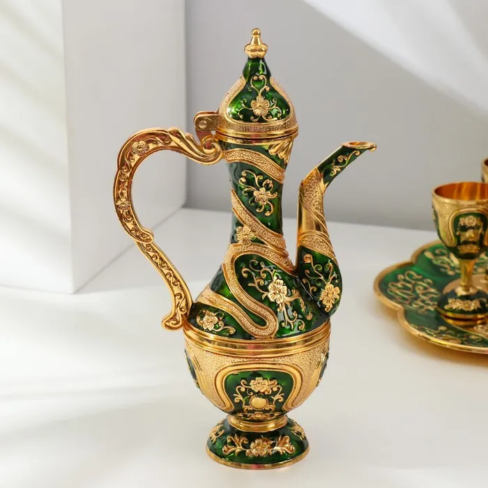 Набор посуды сувенирной: винный кувшин, 6 бокалов, поднос «Турция. Цветы и узоры», зелёный с золотом — Характеристики