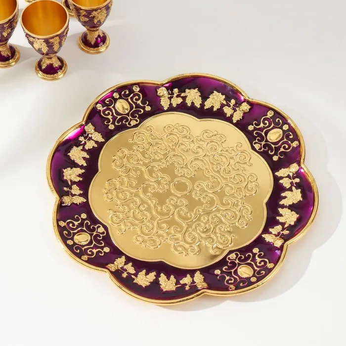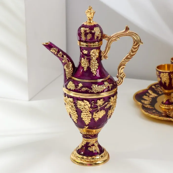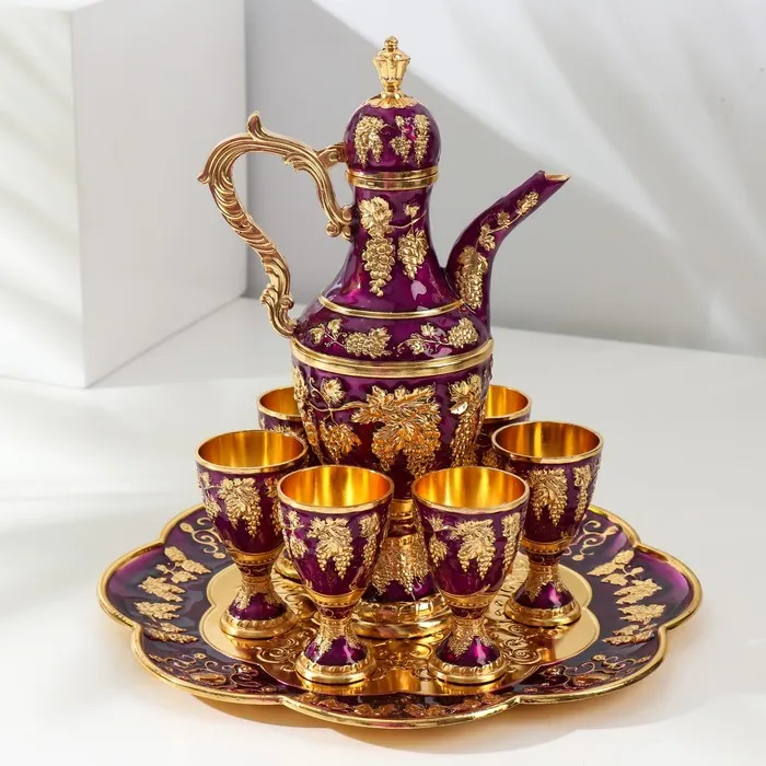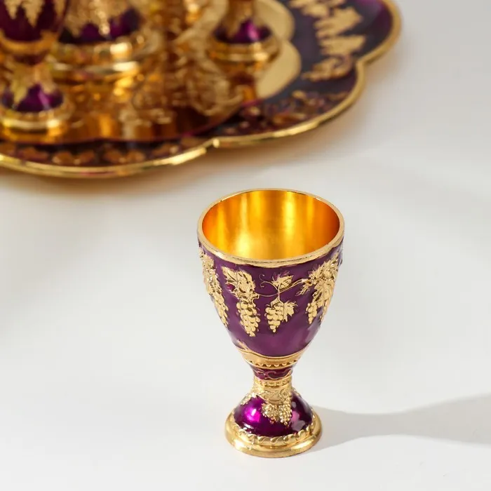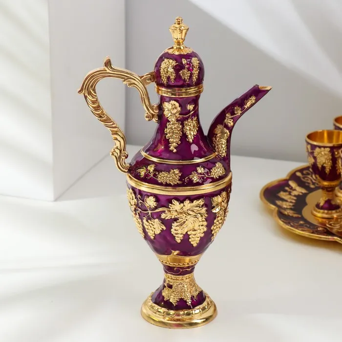 Набор посуды сувенирной: винный кувшин, 6 бокалов, поднос «Турция. Виноград», фиолетовый с золотом — Характеристики