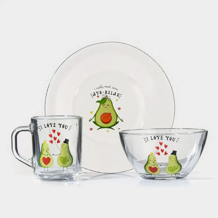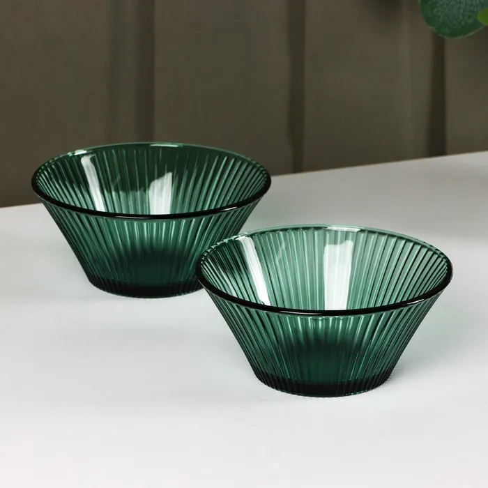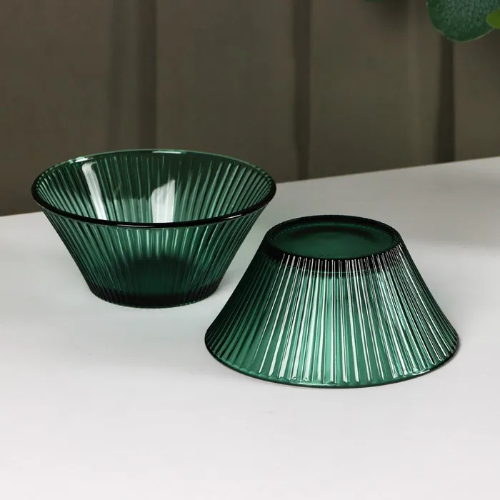 Набор посуды «Вино Верде», 5 предметов: 2 стакана 330 мл, 2 тарелки 280 мл, салатник 1.6 л, стекло, зелёные — Характеристики