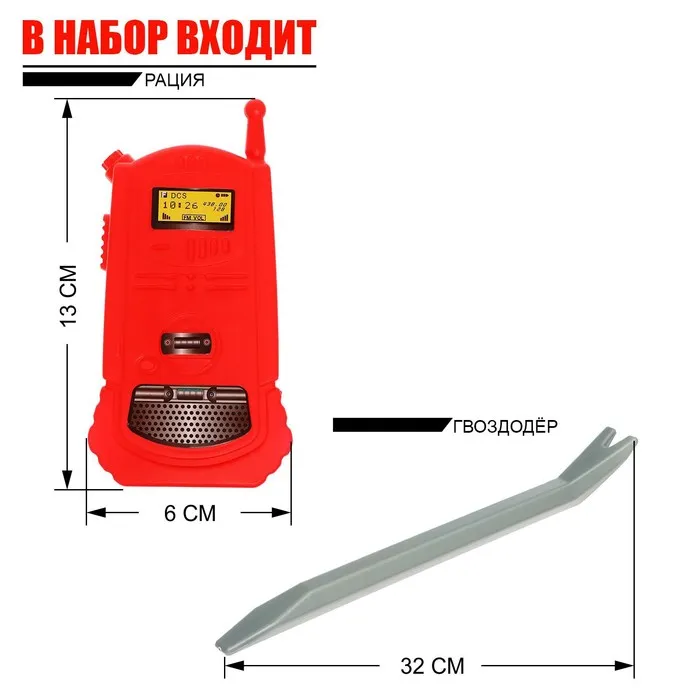 - Полный комплект героя: в набор входят жилет, каска, рация, лом и огнетушитель — всё необходимое для настоящего пожарного. Каждый элемент добавляет реализма и помогает разыгрывать захватывающие сценарии спасения.