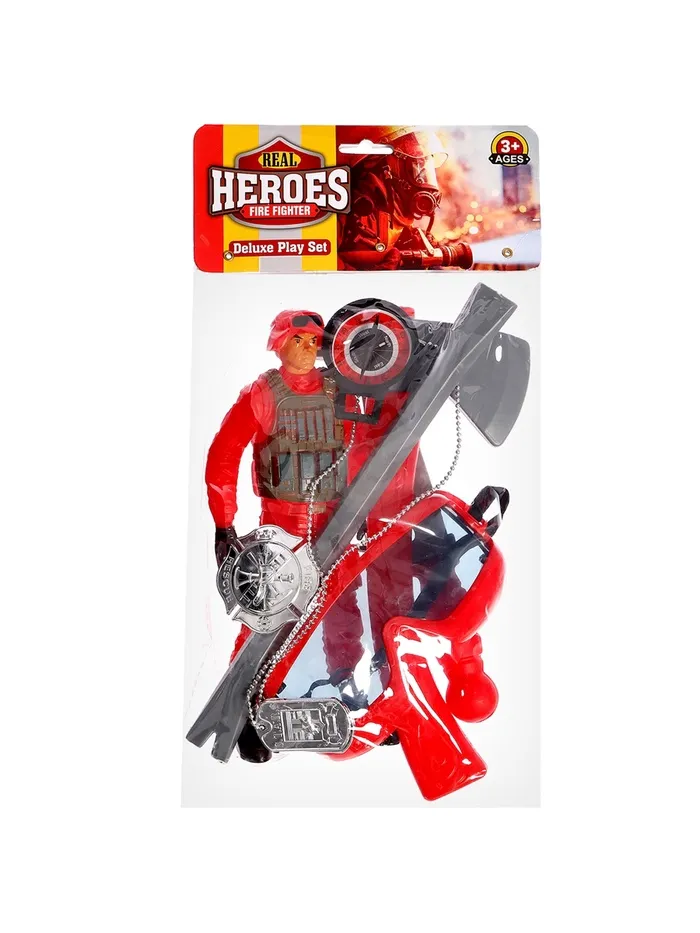 Комплект для юного пожарного создан для тех, кто мечтает примерить на себя роль настоящего героя. В наборе восемь элементов, включая брелок пожарного, чтобы ребёнок мог полностью погрузиться в игру и представлять себя спасателем.