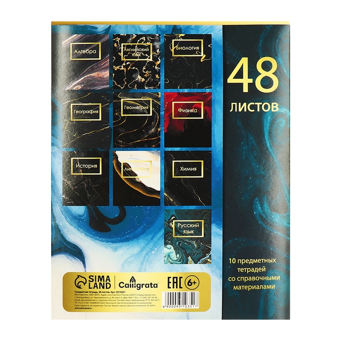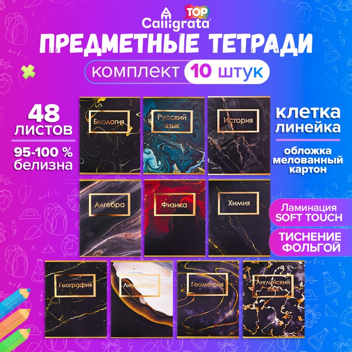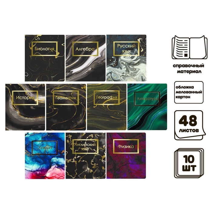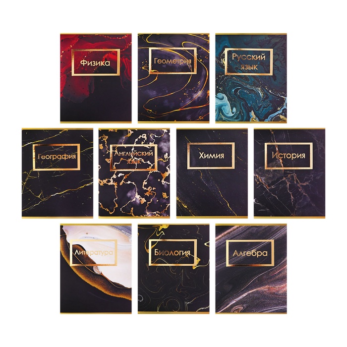 Набор предметных тетрадей 48 листов Calligata «Мрамор темный», 10 предметов — Характеристики