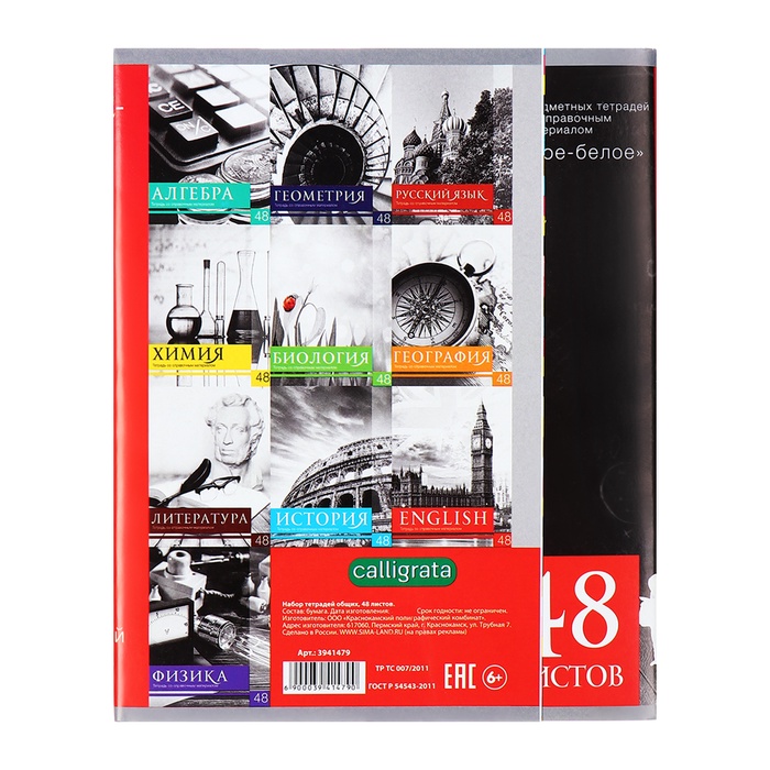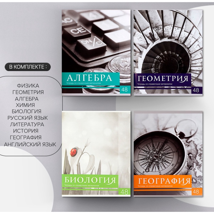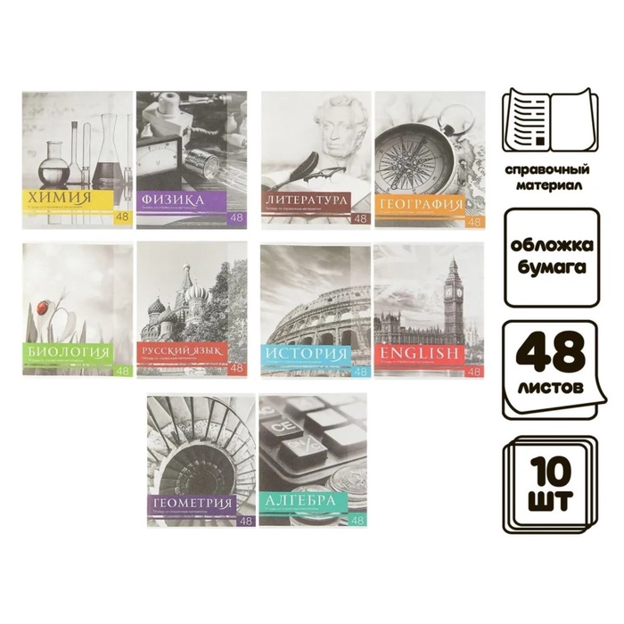 Набор предметных тетрадей 48 листов, Calligrata "Чёрное-белое", 10 предметов, серые листы — Характеристики