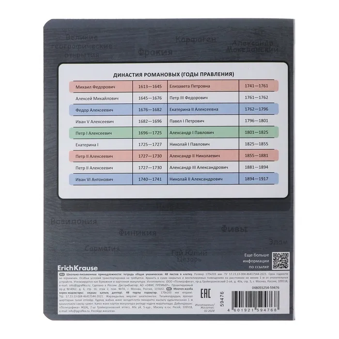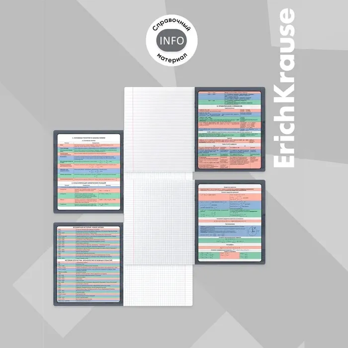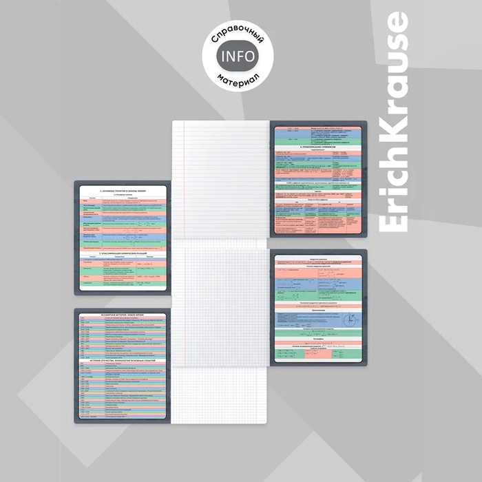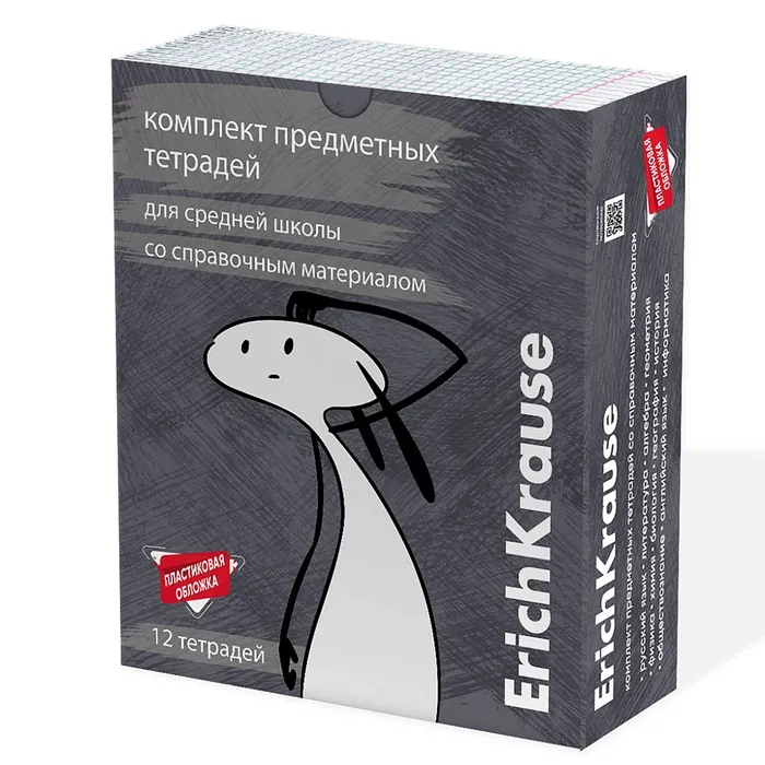 Комплект тетрадей по 12 основным учебным предметам: русский язык, литература, алгебра, геометрия, физика, химия, биология, география, история, обществознание, английский язык, информатика. Удобный вариант для приобретения на целый учебный год или в подарок. Каждая тетрадь объемом 48 листов имеет инфо-блок на 2 страницы с кратким изложением школьной программы. Упаковка - картонная обечайка в термоусадочной пленке.