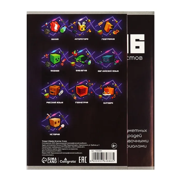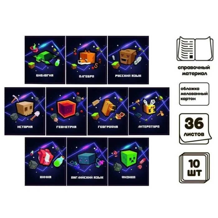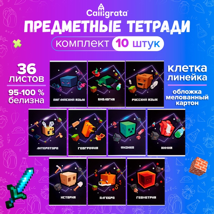 Набор предметных тетрадей А5, 36 листов Сalligrata «Пиксели», 10 предметов — Характеристики