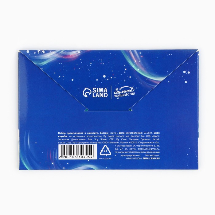 Набор предсказаний на Новый Год в конверте «Волшебство зимы», 8×12 см — Характеристики