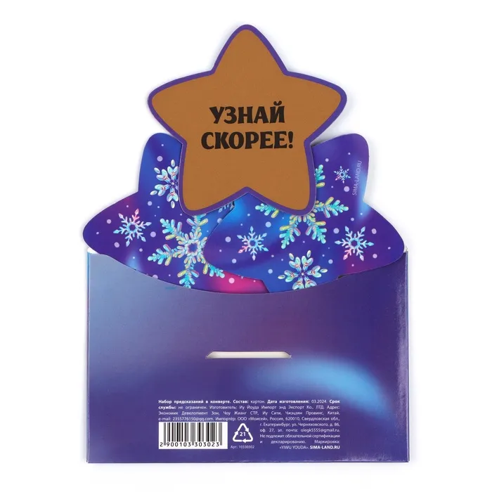 Набор предсказаний в конверте новогодний «Сказочного Нового года», 8 х 12 см — Характеристики