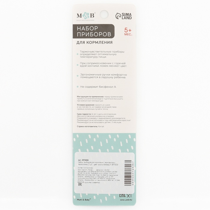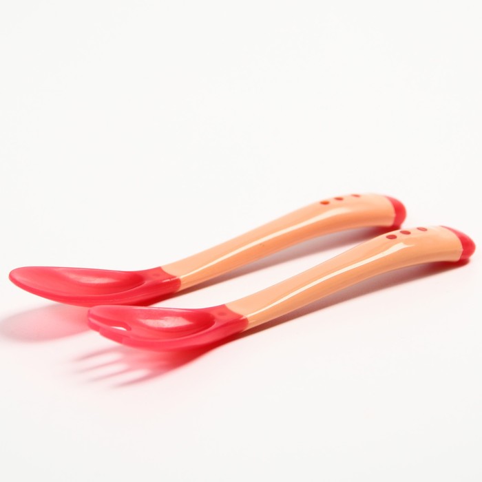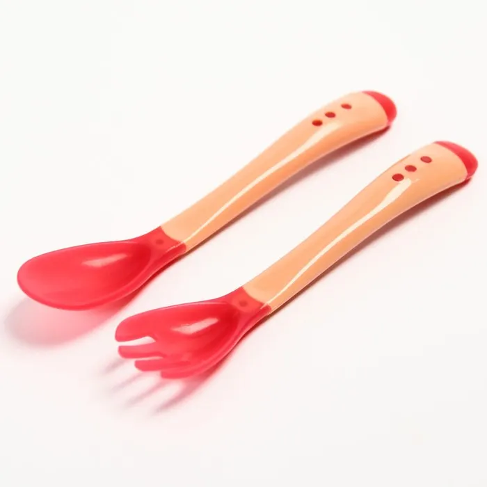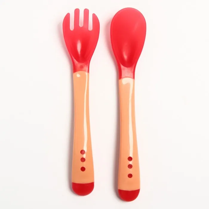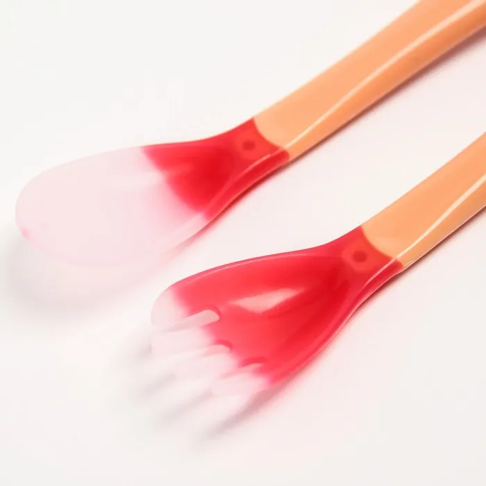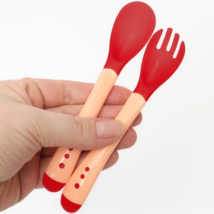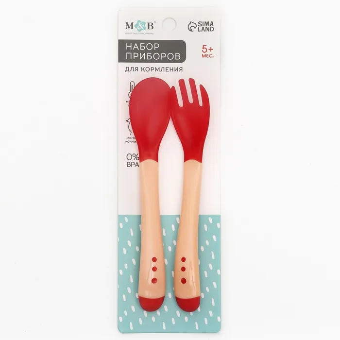 Набор приборов для кормления M&B: термовилка и термоложка, 2 шт., красно-бежевый — Характеристики