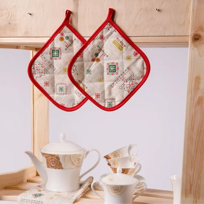 Набор прихваток Праздник 9266-2 18х18 см 2шт, красный, рогожка, хл100% — Характеристики