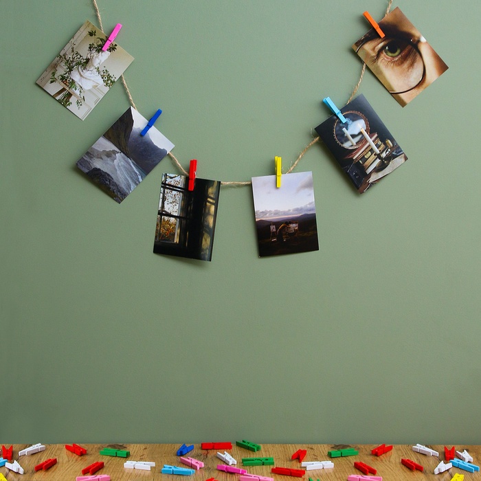 - закрепляйте памятные снимки с помощью прищепок и украшайте ими комнату;