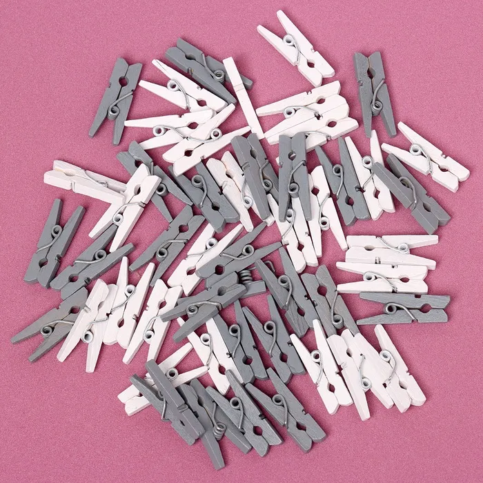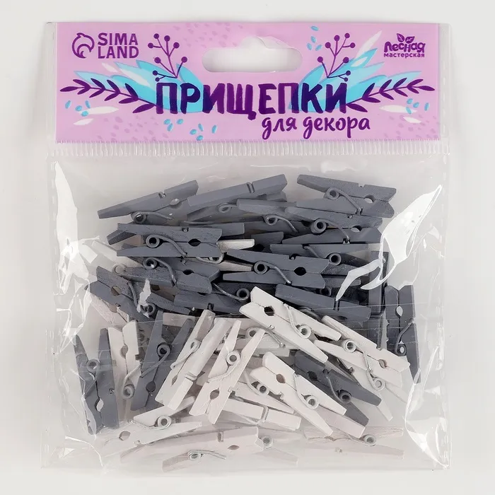 Набор прищепок для декора «Классика» — это стильный аксессуар для оформления интерьера, рукоделия и праздничных мероприятий. Комплект включает 50 мини-прищепок размером 2,5 см в сером и белом цветах. Они идеально подходят для создания декоративных композиций, крепления фотографий или оформления подарков.