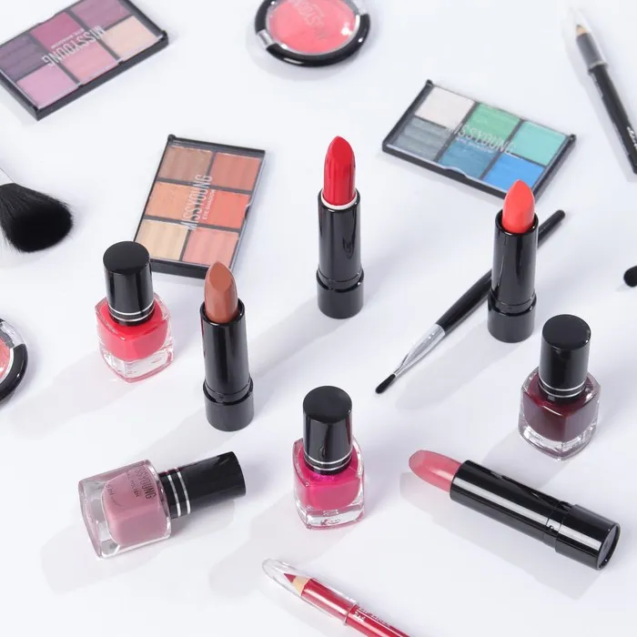 Подарочный набор косметики не включает в себя деликатные и строго индивидуальные аксессуары типа тональных кремов, хайлайтеров , жидких бровей и накладных ресниц.